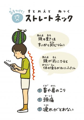 下を向いた姿勢が続くことで、首のカーブが失われ、
