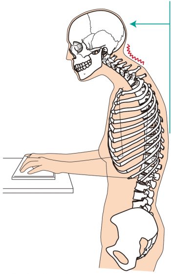 画面を見るときに顔が前に出たり、首が下を向く姿勢は、肩こりの大敵です。